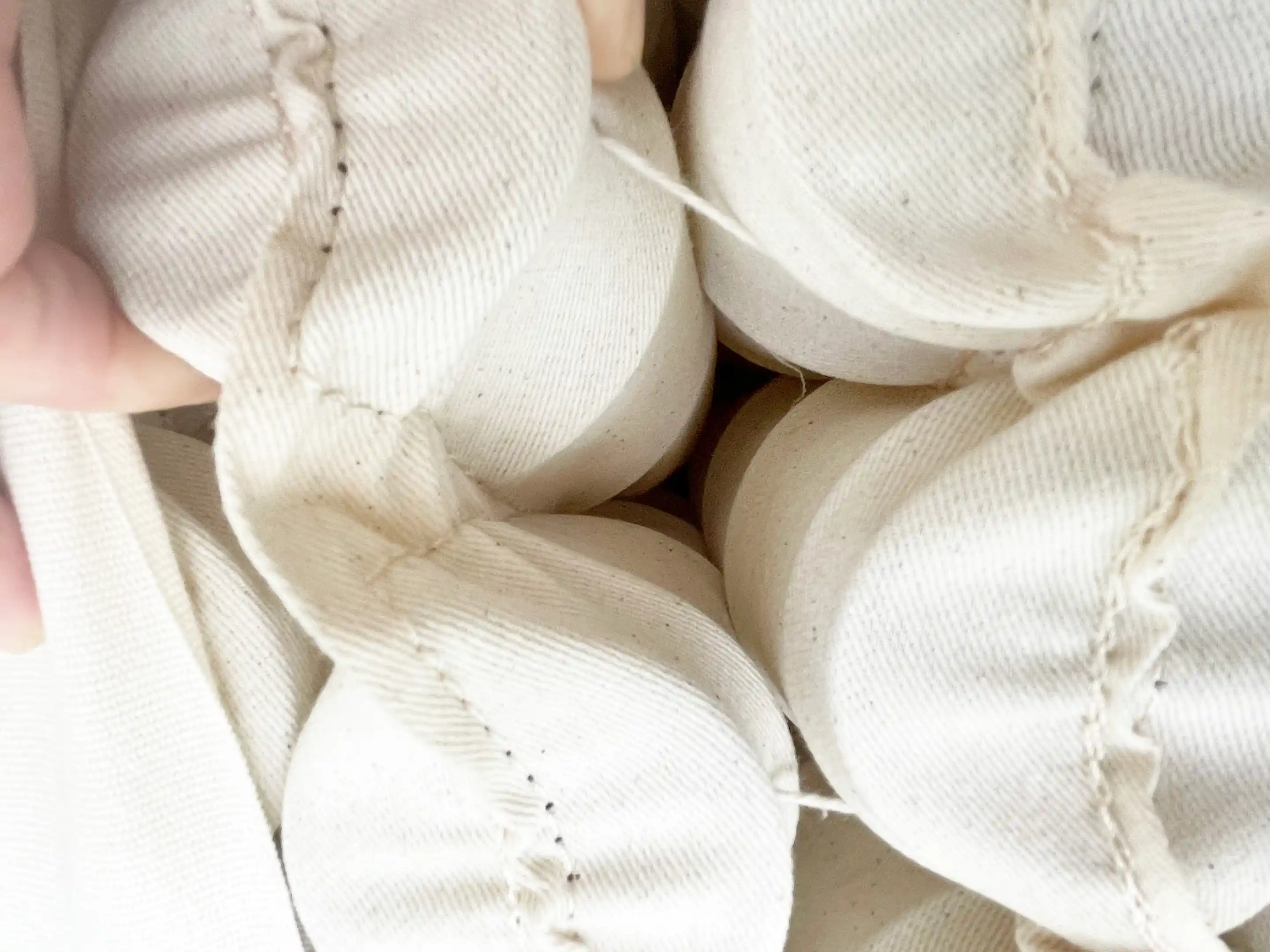 我们使用自主研发的棉布袋装弹簧生产机,生产独立的袋装弹簧条(弹簧排),每个弹簧都包裹在棉布袋中。该机器以缝纫代替超声波焊接,使每个弹簧袋都经过精确缝合,以机器速度实现“手工缝纫”的视觉和结构效果。
