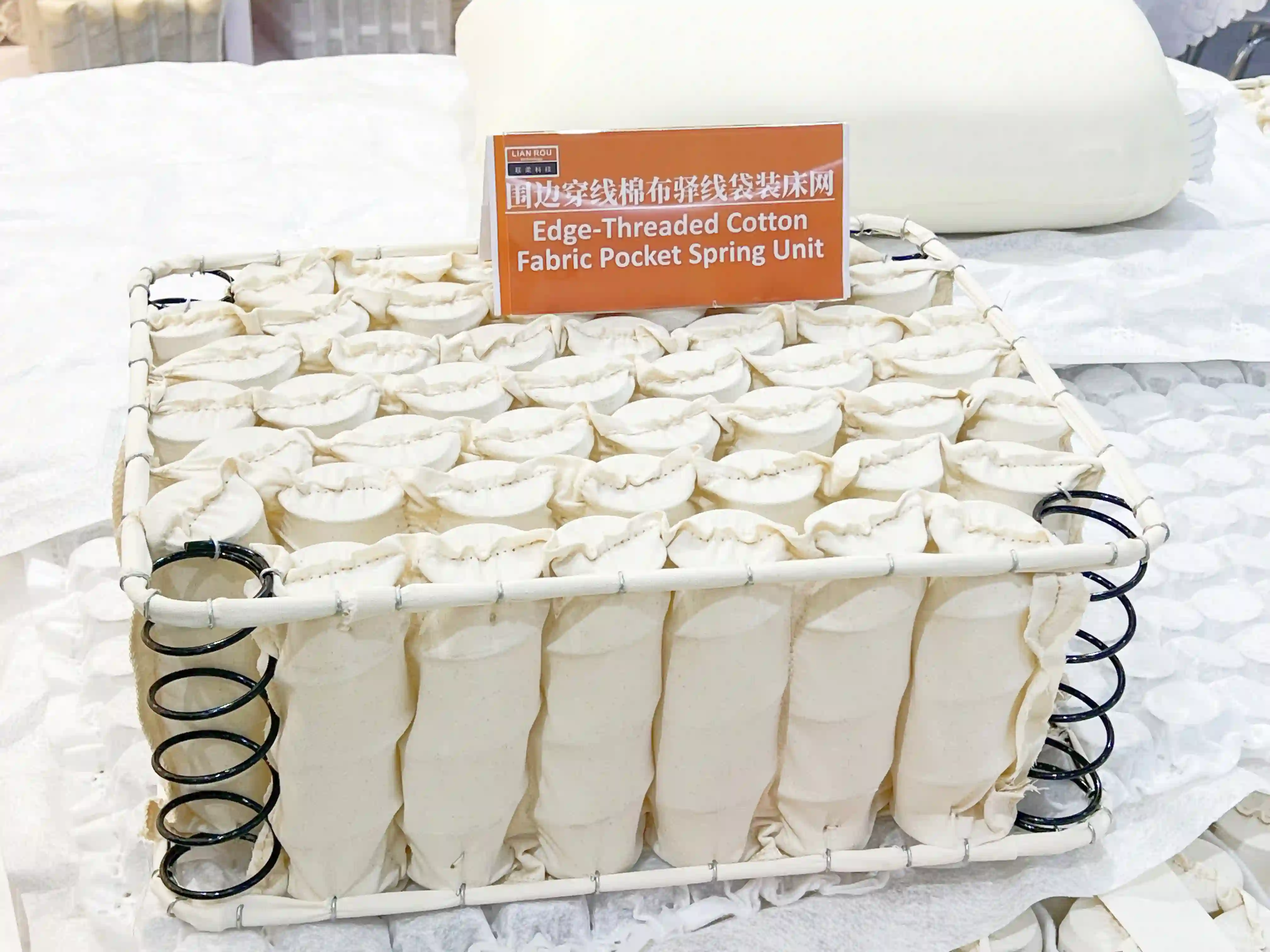 围边穿线棉布袋装弹簧是一款优质环保的床垫芯解决方案,专为高端床垫制造商设计。它由联柔先进的棉布袋装弹簧机生产,以精密的缝纫技术取代超声波焊接,打造出奢华的手工外观、密集的针脚和卓越的耐用性。这项创新确保了更强大的性能、更低的人工成本和更高的生产效率。